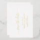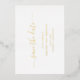 Einfache Hochzeitskarte ohne Foto Save the Date mit einem sauberen und minimalistischen Design mit einer eleganten Touch mit "Save the Date" in Skripten mit Swashes. Der gesamte Text auf der Vorderseite ist in echter Goldfolie. Ein modernes Save the Date ohne Bilder, das sich wunderbar mit jedem Hochzeitsstil abstimmt.
