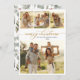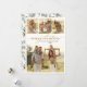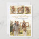 Eleganter Winter Foliage Modernes Kalligraphieskript 4 Foto Collage Weihnachtskarten. Diese festliche, minimalistische Weihnachtskarte mit hübschen vier (4) Foto-Collage, ein "Frohe Weihnachten"-Grußtext, der in einem kursiven handgeschriebenen, in Gold und Weiß geschriebenen Schriftart mit geschwaschenen Schwänzen geschrieben ist. Auf der Rückseite Aquarell Winter botanisches Grün, Eukalyptus Blätter, Beeren, Kiefernnadeln und Äste. Diese Weihnachtskarten des Fotos sind eine tolle Gelegenheit, die Liebsten daran zu erinnern, dass sie sich in dieser Winterferien-Jahreszeit an sie erinnern.