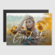 Ein Modern Script Foto Abschluss Announcement Magnet mit handgeschriebenem Schriftart voll blute horizontalen Foto auf der Vorderseite mit Namen und Abschluss Details. Die Rückseite ist ein Magnet. Klicken Sie auf die Schaltfläche Bearbeiten, um dieses Design anzupassen.