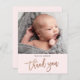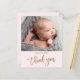 Dieses moderne Foto Dankeschön-Notiz verfügt über Rose Gold handgeschriebene Drehbuch danke, Babyname und Foto auf der Vorderseite. Auf der Rückseite finden Sie eine Danksagung von der ganzen Familie. Klicken Sie auf die Schaltfläche Bearbeiten, um dieses Design mit Ihren Fotos und Details anzupassen.