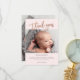 Dieses moderne 2-Foto Dankeschön Note verfügt über Rose Gold handgeschriebene Drehbuch danke, persönliche Nachricht und Foto auf der Vorderseite. Auf der Rückseite befindet sich ein zweites Baby-Foto, das ein volles, senkrechte Foto ist. Klicken Sie auf die Schaltfläche Bearbeiten, um dieses Design mit Ihren Fotos und Details anzupassen.