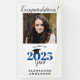 Dieses vertikale Banner zeichnet sich durch ein Abschluss-Design mit einem quadratischen Foto für ein Bild des Absolventen aus. Personalisieren Sie dieses moderne Banner mit dem Namen des Absolventen. Der Text lautet "Herzlichen Glückwunsch! Klasse von 2025 Grad" mit dem Jahr in blau erscheint. Das Design ist mit Kalligrafie-Text und einer Grafik eines Graduierungspapiers versehen.
