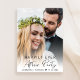 Moderne Entfaltung und kleine Hochzeitsankündigung und Empfang Einladung, um Familie und Freunde lassen wissen, dass Sie verheiratet in einer privaten Hochzeitsfeier, und laden sie jetzt zu einem Hochzeitsempfang. Die Vorderseite zeigt Ihr Hochzeitstag Foto überlagert mit "Happily Ever After Party" in einer Mischung aus einfachen Typografie und einem eleganten Drehbuch. Fügen Sie unter Ihrem Foto Ihre Vornamen und Ihr Hochzeitstermin hinzu. Auf der Rückseite personalisieren Sie Ihre Nachricht detaillierter und fügen Party- oder Empfang-Details und Ihre Namen in einem signaturähnlichen Skript hinzu.