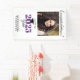 Dieses vertikale Banner zeichnet sich durch ein Abschluss-Design mit einem quadratischen Foto-Rahmen für ein Bild des Absolventen aus. Personalisieren Sie dieses moderne Banner mit dem Namen des Absolventen. Der Text lautet "Herzlichen Glückwunsch! Klasse von 2025 Grad" mit dem Jahr in lila. Das Design ist mit Kalligrafie-Text und einer Grafik eines Graduierungspapiers versehen.