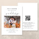 Modernes Script Foto Hochzeit. Fügen Sie Ihr Lieblings-Foto hinzu und personalisieren Sie mit Ihren Daten. Hochzeit ist in einem stilvollen Set handschriftlich Stift Skript. Generieren Sie einen QR-Code auf Ihrer Hochzeitswebsite, um den auf der Rückseite durch den Austausch der Probe-URL mit Ihrer eigenen, für eine bequeme Weise für Ihre Gäste zu uAwg und sehen Sie mehr Details.