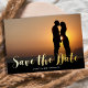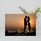 Elegante Echtfolienskripte Kalligraphie, einfach Save the Date waagerechte Fotokarte. Personalisieren Sie dies, indem Sie Ihr eigenes Foto und Details auf der Vorder- und Rückseite hinzufügen, um es zu Ihrem ganz eigenen zu machen.