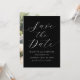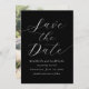 Eine elegante, moderne Schwarz-Weiß-Hochzeit spart die Dattelkarte. Sie können ein Foto auf der Kartenrückseite hinzufügen.