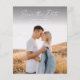 Budget Modernes Skript Foto Hochzeit Speichern Sie die Datumskarte. Auf der Rückseite befindet sich ein zweites Foto mit weiteren Details. Klicken Sie auf die Schaltfläche Bearbeiten, um dieses Design mit Ihren Fotos und Hochzeitsdetails anzupassen.