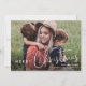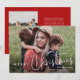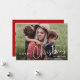 Modernes Drehbuch Frohe Weihnachten Einfache Weihnachtskarte mit handgeschriebenem Schriftart mit bleichtem Foto auf der Vorderseite mit Familiennamen und individuellen Namen. Der Rücken hat ein zweites Foto mit einer herzlichen Urlaubsbotschaft der Familie. Klicken Sie auf die Schaltfläche Bearbeiten, um dieses Design anzupassen.