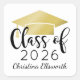 Die Aufkleber für kundenspezifische Abschlüsse zeichnen sich durch ein modernes und elegantes personalisiertes Design mit dem Namen des Absolventen, dem Klassenjahr in trendiger schwarzer Kalligrafie-Schrift und einem goldfarbenen Graduiertenmotiv aus. Verwenden Sie zum Akzent Ankündigung Karte Umschläge oder Graduation Party Favoriten!