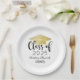 Die Teller mit kundenspezifischem Papier-Abschluss zeichnen sich durch ein modernes und elegantes personalisiertes Design aus, das den Namen des Absolventen, sein Klassenjahr in trendiger schwarzer Kalligrafie-Schrift, ein goldfarbenes Gradmützenmotiv und Scrollakzent aufweist.