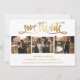Elegante Goldhochzeit 4 Foto speichern Sie die Dattelkarten mit moderner Kalligraphie. Sie können diese Karte ganz einfach mit Ihren Bildern und Hochzeitsdetails, einschließlich einer Hochzeitswebsite, personalisieren.