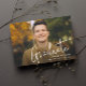Eine moderne Script Graduate Simple Foto Abschluss Announcement mit handgeschriebenem Schriftart voll blued portrait Foto auf der Vorderseite mit Namen und Abschluss Details. Die Rückseite hat ein zweites Foto mit weiteren Details. Klicken Sie auf die Schaltfläche Bearbeiten, um dieses Design anzupassen.
