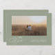 Ein sehr modernes Kalligrafieschrift vor einem schlügelgrünen Hintergrund schmückt diese Save the Date Karte. Einfache Anpassung an Ihre persönlichen Daten, Foto und Hochzeitswebsite-URL