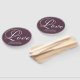 Liebe, Liebe, Liebe! Ändern Sie die lila Hintergrundfarbe der Kaskadenfarbe, um den Farben Ihrer Hochzeitsfeier zu entsprechen. Eleganter Grauer handgeschriebener Stil Typografie Text Zauber das Wort Liebe. Fügen Sie Ihre eigene Danksagung für Ihre Gäste zum Lesen und Genießen. Ideal für Verlobungsfeiern, Duschen und Hochzeitsfeiern und Empfänge.