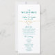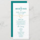 Typografie, minimalistisches, modernes zweiseitiges aquamarines Hochzeitsprogramm in Weiß und Grün mit Goldseilherz und einfacher handgeschriebener Kalligraphie-Schrift.