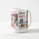 Moderne Script Multi Foto Abschluss Graduate Coffee Tasse bietet fünf Ihrer Lieblings-Fotos Ihrer Uni, Universität oder High School Absolvent mit dem modernen burgundischen roten Skript-Overlay "Graduate". Einfach, stilvoll und elegant. Das ist das perfekte personalisierte Geschenk für einen Absolventen. Erstellt von ©Evco Studio www.zazzle.com/store/evcostudio
