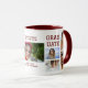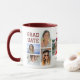 Moderne Script Multi Foto Abschluss Graduate Coffee Tasse bietet fünf Ihrer Lieblings-Fotos Ihrer Uni, Universität oder High School Absolvent mit dem modernen burgundischen roten Skript-Overlay "Graduate". Einfach, stilvoll und elegant. Das ist das perfekte personalisierte Geschenk für einen Absolventen. Erstellt von ©Evco Studio www.zazzle.com/store/evcostudio