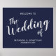 Modernes Script Navy Blue Wedding Begrüßungszeiche Poster