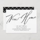 Neue Zuhause-Adressenankündigung in Schwarzweiß mit einem modernen Script-Schriftart mit einem koordinierenden karierten Rücken für eine zusätzliche Touch.