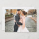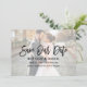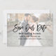 Modernes Pinselskript Rette unsere Date Verlobung Announcement Card mit Foto Overlay - Foto vorne und Foto hinten