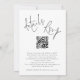 Modernes Script QR Code Foto in einer Hochzeit. Fügen Sie Ihren QR-Code zu Ihrer Hochzeitswebsite auf der Rückseite macht dies zu einer bequemen Option für Ihre Gäste, um alle Details zu sehen, ohne dass separate UAWG- und Detailkarten erforderlich sind. Ihr QR-Code wird automatisch generiert, wenn Sie die URL des Beispiels auf Ihren eigenen personalisieren. Eine informelle Set-Typografie in Schwarz für die Hauptüberschrift The Wedding Of and Details und UAwg auf der Rückseite ergänzt die Erholung des Textes, die Sie leicht personalisieren können. Ersetzen Sie das Beispiel-Foto durch Ihren eigenen Favoriten.