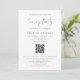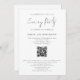 Modernes Script QR Code Hochzeit Abend Party. Verfügbar in digitaler Form und gedruckt. Fügen Sie Ihren QR-Code zu Ihrer Hochzeitswebsite hinzu, damit Ihre Gäste alle Details online sehen können, ohne separate Gehäuse benötigen zu müssen. Eine informelle Set-Typografie in schwarz für Abend Party ergänzt die Erholung des Textes, die Sie leicht personalisieren können.