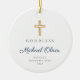 Modernes Script Religious Boy Taufe Foto Keramik Ornament.