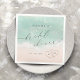 Schöne türkisfarbene abstrakte Aquarell glitzernde Ozeanwelle und Herzen im Hintergrund des Sandstrandes, mit stilvollem Drehbuch und eleganten Serif-Schriftart, modern und einfach. Große Servietten für Hochzeitsdusche am Strand, tropische Hochzeit in Urlaubsort, Brautparty zum Thema Meeresküste im Sommer.