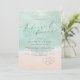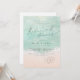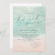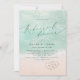 Schöne türkisfarbene abstrakte Aquarell glitzernde Ozeanwelle und Herzen im Hintergrund des Sandstrandes, mit stilvollem Drehbuch und eleganten Serif-Schriftart, modern und einfach. Große Probe-Dinner-Einladungen für Hochzeiten an den Wasserstränden, tropische Hochzeit in Urlaubsort, Hochzeitsfeiern zum Thema Meeresküste im Sommer.