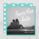 Modernes Drehbuch Save the Date Fotokarte. Dieses elegante und schlichte Design mit einer leuchtend kontrastreichen Grenze in aquamarinem Blau ist das perfekte Design, um Ihre kommenden Nuptials Ihren Freunden und Ihrer Familie bekannt zu geben. Wir haben ein Polka Punktmuster auf der Rückseite der Karte hinzugefügt, aber das können wir gerne ändern. Fügen Sie Ihr Lieblings-Foto, Ihre Namen und Ihr Datum auf die Karte und Sie sind alle Set.