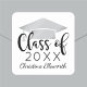 Die Aufkleber für kundenspezifische Abschlüsse zeichnen sich durch ein modernes und elegantes personalisiertes Design mit dem Namen des Absolventen, dem Klassenjahr in trendiger schwarzer Kalligraphie-Schrift und einem silbergrauen Graduierdeckel aus.