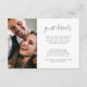 Moderne Script Wedding Guest Details Foto Card in Blau.