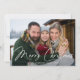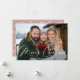 Moderne Urlaubsfotokarte mit "Frohe Weihnachten", die in einem weißen handgeschriebenen Drehbuch über Ihr horizontales Foto gezeigt wird. Personalisieren Sie die Vorderseite der Weihnachtskarte mit Ihrem Familiennamen und dem Jahr. Die Karte kehrt zu einer staubigen Rose und einem weißen Schneeflockenmuster zurück.