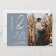 Moderne silberne Ampere und Foto-Namen Save the Date auf editierbarem staubblauem. Fügen Sie Ihr Foto hinzu.