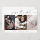Diese moderne silberne 3-Fotovorlage Save the Date ist perfekt für eine minimalistische Hochzeit. Das schlichte silbergraue Farbdesign zeichnet sich durch eine einzigartige industrielle Schrift mit modernem boho Stil aus. Anpassbar in jeder Farbe. Behalt das Design minimal und elegant, wie es ist, oder personalisiere es durch Hinzufügen von eigenen Grafiken und Kunstwerken.