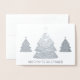 Elegante und moderne Weihnachtsbaumdesignkarte in echter Silberfolie, mit Foto und Text im Inneren.