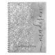 Elegantes, modernes, gürlich silbergraues Glitzer Monogramm-Skript-Signatur benutzerdefinierte personalisierte Spiralnotebook. Dieses feminine Design mit einem silbergrauen (grauen) glänzenden Glitzer auf Imitaten silberfarbener metallischer Unterlage und handgeschriebenem Unterschriftnamen oder Monogramm Textvorlage. Der Name ist in einer riesigen Wirblen Hand geschrieben Schwanz Schriftart Stil geschmückt. Große Frauengeschenke für Zuhause,, Business, Brautparty, Hochzeit, Geburtstag, eine süße 16 Geburtstagsparty oder alle, die Lieben hübsch mädchenhaften Stil.