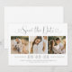 Moderne, silbergraue und weiße Hochzeiten sichern die Datumskarten mit einer Collage von drei quadratischen Verlobungen Fotos und einem stilvollen Typografie-Design mit schicken Kalligraphie-Skript und Herzakzenten. Der einfache und elegante, kundenspezifische Text, der mit dem numerischen Hochzeitstermin, den Braut- und Bräutigam-Namen, der Zeremonie-Position, der Hochzeitswebsite und der formellen Einladung zum Nachfassen von Formulierungen vollständig personalisiert werden kann.