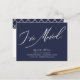 Navy Ich habe eine neue Adressenankündigung mit einem modernen Script-Schriftart verschoben, mit einem koordinierenden karierten Rücken für eine zusätzliche Touch.