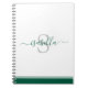 Einfaches, modernes Skript Monogramm personalisiertes Notizbuch für Ihre Zeitschrift. Das elegante smaragdgrüne Stilskript passt sich farblich dem Liniendesign an, gleicht es aber stilvoll aus und schafft so eine lustige Drehung zum minimalistischen Look.