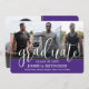 Teilen Sie die Freude eines Gymnasiums oder Uni-Abschlusses mit individuellen 4 Foto Collage lila und weiß Ankündigungen. Die Bilder und alle Formulierungen auf dieser Vorlage sind einfach zu personalisieren mit allen Details Ihrer Wahl, wie Party Einladung-Infos, Eltern-Namen, besondere Ehren, Studientitel, Lieblings-inspirierendes Zitat, Kontaktinformationen oder Zukunftspläne des Absolventen. Alle Farben können mit dem Zazzle Design Tool angepasst werden. (IMAGE PLACEMENT TIP: Eine einfache Möglichkeit, ein Foto genau so zu zentrieren, wie Sie es gewollt haben, ist es, es einzuschneiden, bevor Sie es auf die Zazzle-Website hochladen.) Das lila, weiße und schwarze Streifen-Design besticht durch moderne Skriptkalligraphie mit einer Mörtel-Kappe, elegante klassische Serifentypografie und vier Fotos Ihrer Wahl, wie Seniorbilder oder Bilder aus der Anlaufzeremonie. Diese modernen Abschluss-Karten, die sowohl als gedruckte als auch als Download-Ankündigungen erhältlich sind, sind eine stilvolle Möglichkeit, um mit Freunden und Familie einen besonderen Tag zu feiern. Herzlichen Glückwunsch an den Absolventen!