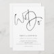 Modernes Skript machen wir einfache Hochzeitseinladung. Ein schlichtes, aber elegantes Schwarz-Weiß-Design. Stilvolles Set-Skript We Do nimmt die mittlere Bühne an der Spitze.Die Erholung des Textes können Sie leicht personalisieren. Text- und Hintergrundfarben können geändert werden, wenn Sie Ihr Hochzeitstil besser Anzug über die weitere Option anpassen möchten.