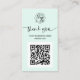 Moderne minimalistische Skript und QR-Code in schwarz und pastellfarben Minze grün Business Order danke. Fügen Sie Ihre sozialen Medien hinzu. Mit einem eleganten Script-Schriftart können Sie alle Farbenvarianten bearbeiten, Ihr Logo hinzufügen. 5 Sterne Rezension für Ihre Kunden.