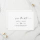Dieses moderne Drehbuch Save the Date ist perfekt für eine minimalistische Hochzeit. Das schlichte Schwarz-Weiß-Design zeichnet sich durch eine einzigartige industrielle Schrift mit modernem Boho-Stil aus. Anpassbar in jeder Farbe. Behalt das Design minimal und elegant, wie es ist, oder personalisiere es durch Hinzufügen von eigenen Grafiken und Kunstwerken.