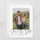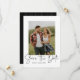 Mit einem Single-Foto und einem modernen Drehbuch "Save the Date" ist diese Karte der perfekte Weg, um Ihre Verlobung und die bevorstehende Hochzeit zu Freunden und Familie anzukündigen. Der schwarze Text ist fett und modern, aber dennoch raffiniert. Der anpassbare Text auf der Vorderseite hat Platz für Namen, Datum, Ort und andere Informationen wie eine Hochzeitswebsite. Die Rückseite ist ein schwarz-weiß gestreiftes Muster. Die schwarze Farbe kann bearbeitet werden, indem Sie auf "Anpassen" klicken.