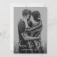 Mit einem Single-Foto und einem modernen Drehbuch "Save the Date" ist diese Karte der perfekte Weg, um Ihre Verlobung und die bevorstehende Hochzeit zu Freunden und Familie anzukündigen. Der weiße Text ist fett und modern, aber dennoch raffiniert. Der anpassbare Text auf der Vorderseite hat Platz für Namen, Datum, Ort und andere Informationen wie eine Hochzeitswebsite. Die Rückseite ist ein schwarz-weiß gestreiftes Muster. Die schwarze Farbe kann bearbeitet werden, indem Sie auf "Anpassen" klicken.
