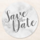 Modernes Skript White Marble Hochzeit Speichern Si Runder Pappuntersetzer