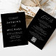 Einfache und elegante Einladungen für eine Hochzeit mit einem weißen, handgeschriebenen Drehbuch, kombiniert mit modernen Schriften mit schwarzem Hintergrund. Personalisieren Sie die Front der minimalistischen Hochzeitseinladung mit Ihrem Namen und Ihre Hochzeitsdetails. Personalisieren Sie die Rückseite der Einladung mit Hochzeitsdetails wie Empfang-Informationen, Hotel-Unterkünfte, UAWG-Instruktionen und Hochzeitswebsite. Fügen Sie Ihren Wunschwebseiten-Link in die beiliegende QR-Code-Vorlage ein, damit Ihre Gäste ganz einfach online UAWG und weitere Hochzeitsinformationen erhalten. Die Schwarz-Weiß-Einladungen sind die perfekte Wahl für moderne Hochzeiten.