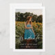 Dieses Foto Abschluss-Ankündigung bietet moderne Skripte über ein Abschluss Foto auf der Vorderseite. Fügen Sie der Rückseite ein zweites Foto mit optionalem Text für eine Graduierungsparty oder weiteren Details hinzu.